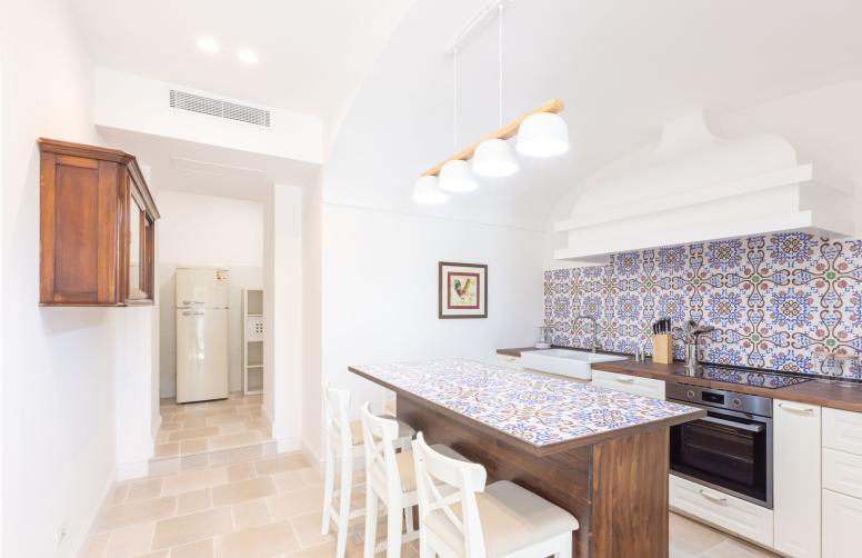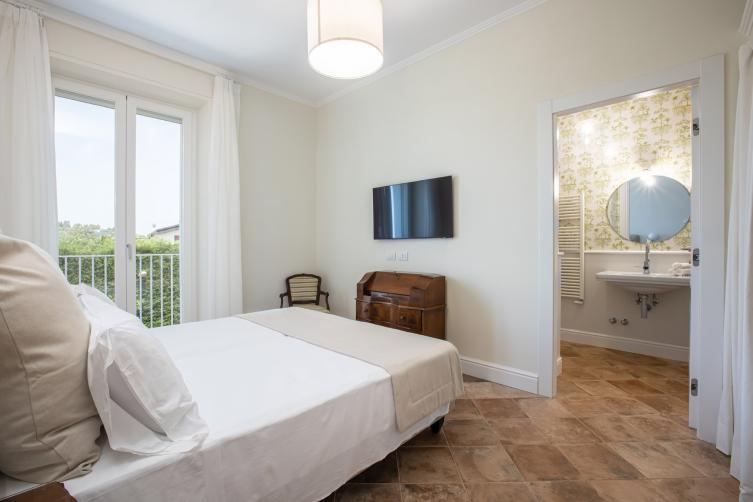 The elegant villa Gardenia can comfortably accommodate up to six people as it has three large double bedrooms, a large living room and a fully equipped kitchen. The soft colours chosen for the furnishings and the outdoor balconies give freshness and brightness to the whole interior, for an all-round relaxing stay.
